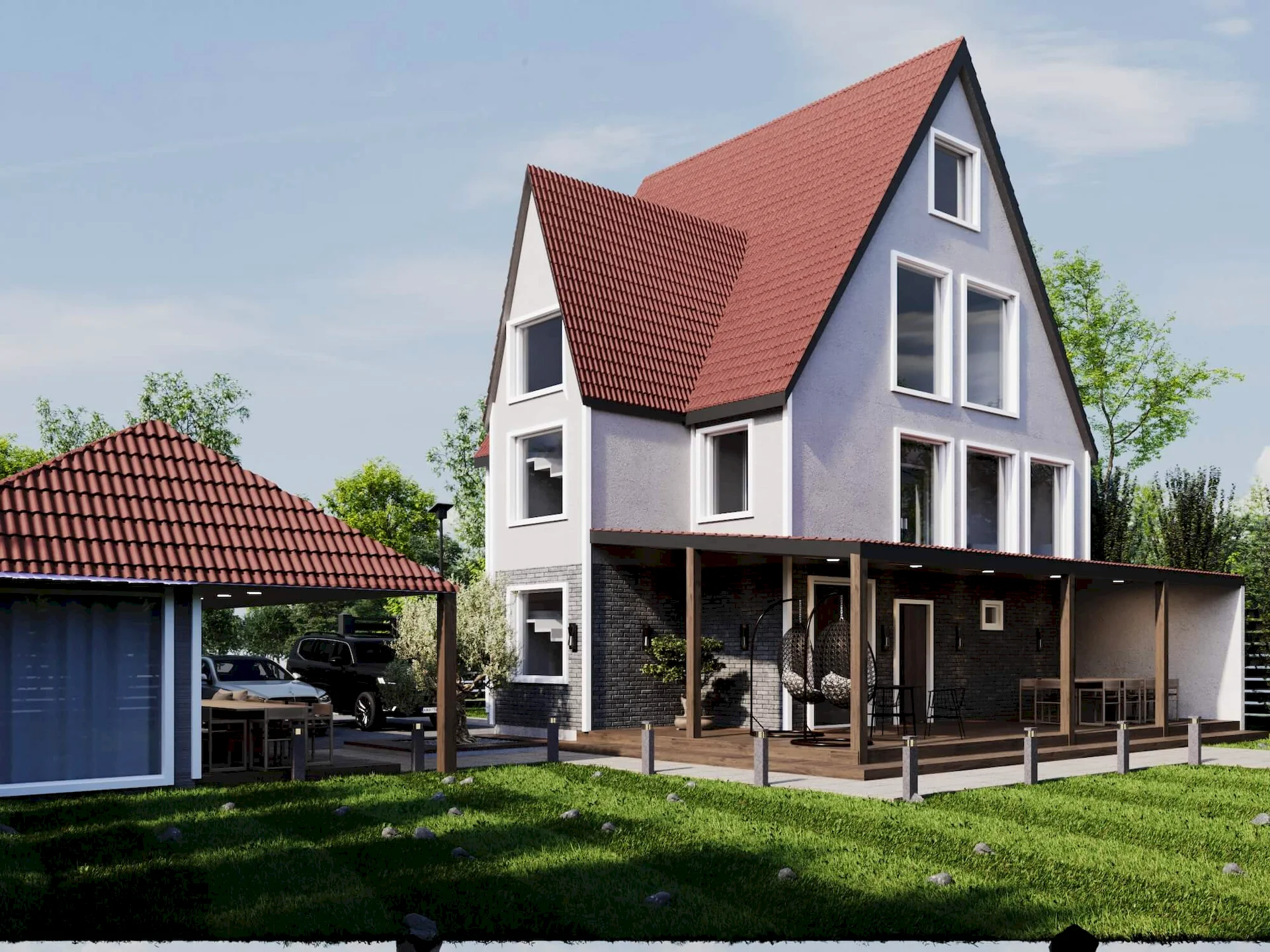 Современный загородный дом с просторной территорией: стильная архитектура, гармония с природой и простор для отдыха на свежем воздухе.