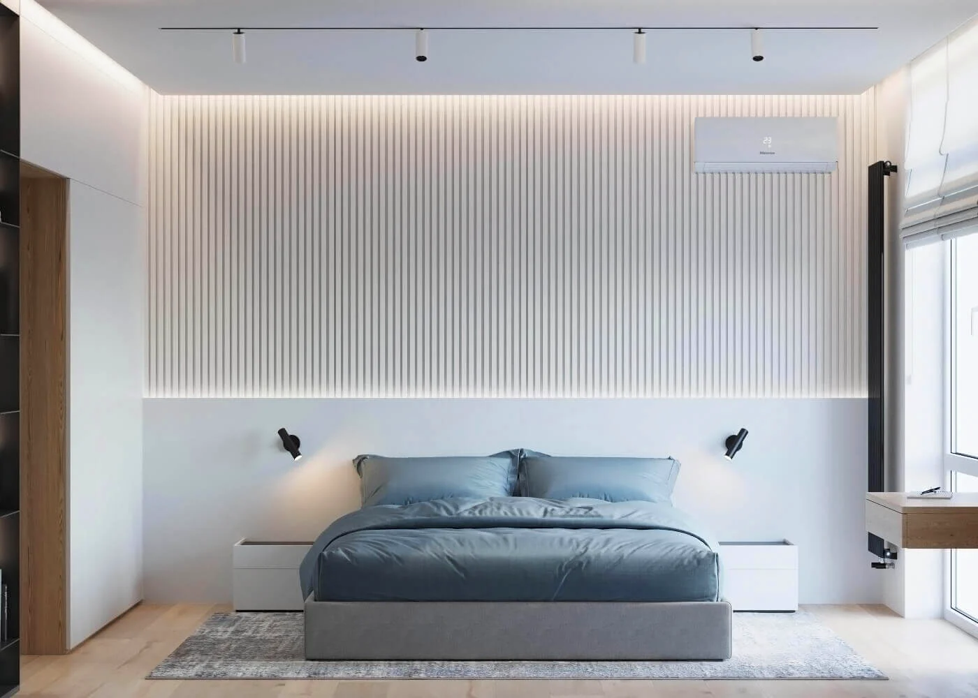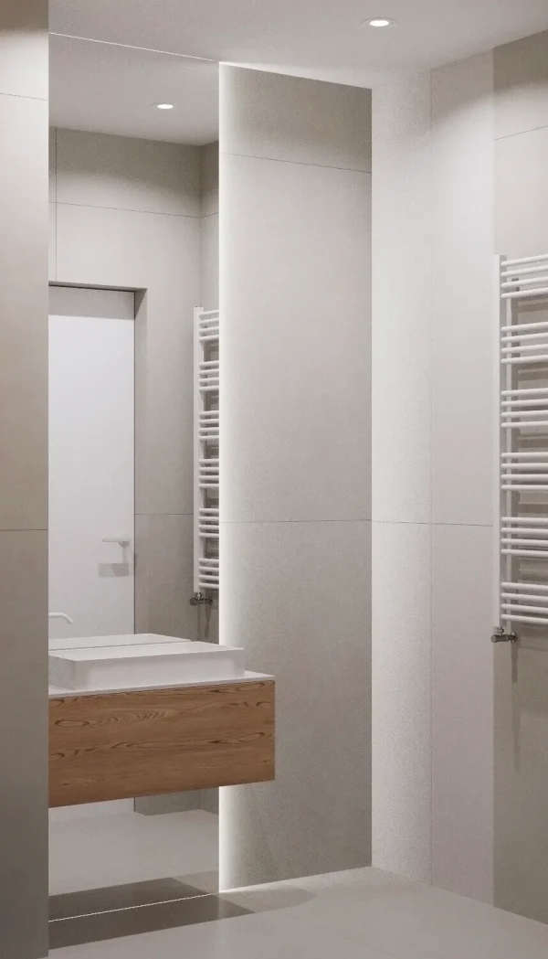 Акцентами стали – дерево светлого оттенка и синий цвет, именно они придали цвету и натуральности пространства.