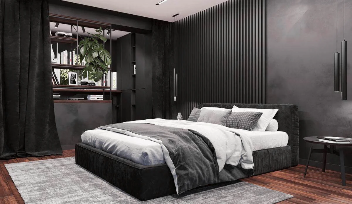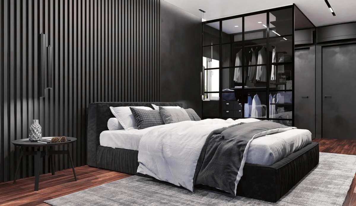 Стены обработаны мебельными панелями и декоративной штукатуркой, что придает разнообразие фактур и натуральность в пространстве